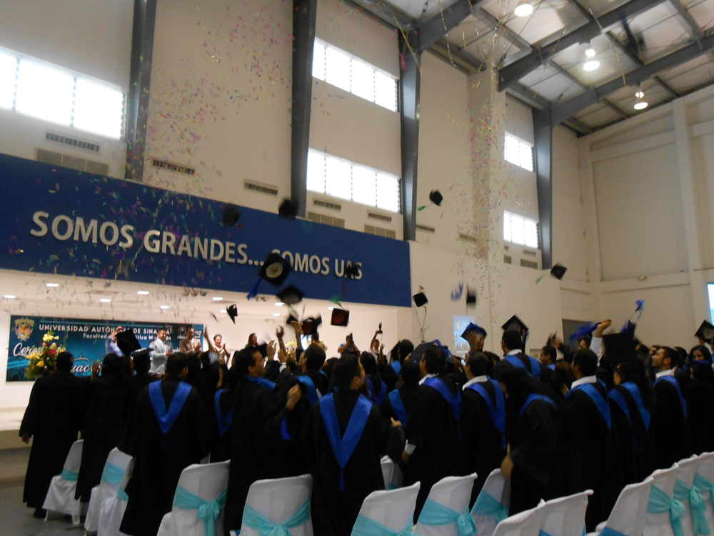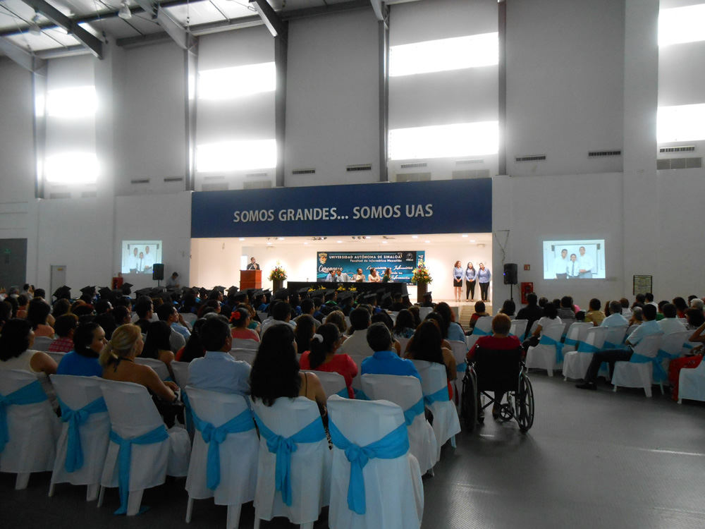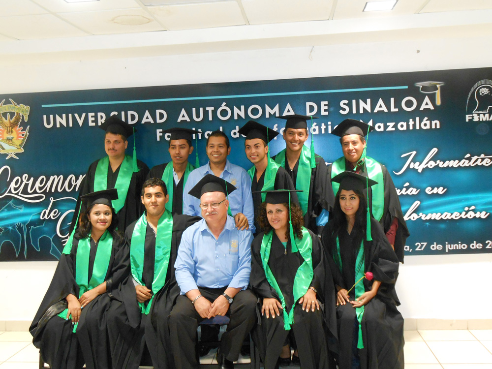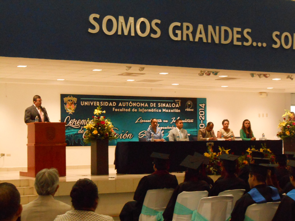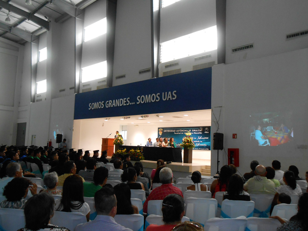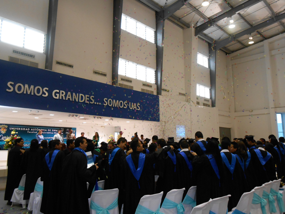 El viernes 27 de Junio se ha llevado a cabo la Ceremonia de Graduación de los ahora ex alumnos de la Facultad de Informática Mazatlán, egresados de la segunda generación de Licenciados en Ingeniería en Sistemas de Información y la generación 19 de Licenciados en Informática. El Acto Académico se realizó en las instalaciones del Polideportivo de la Universidad Autónoma de Sinaloa a las 9:00 horas. Ha sido un evento muy emotivo, donde se han dado cita familiares y amigos de los graduados para felicitar a los nuevos profesionistas.