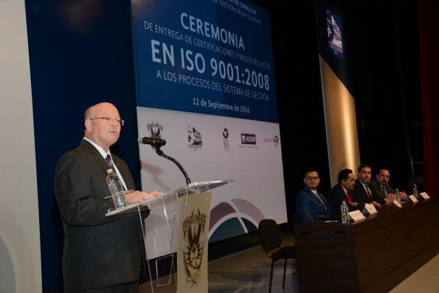Al presidir la Ceremonia de Entrega de Certificaciones y Recertificación en ISO 9001:2008 a los Procesos del Sistema de Gestión en la Casa de Estudios, el rector de la UAS dijo que esto habla de toda una cultura de la evaluación y de la calidad que durante los últimos años ha permeado de manera fundamental el quehacer institucional.