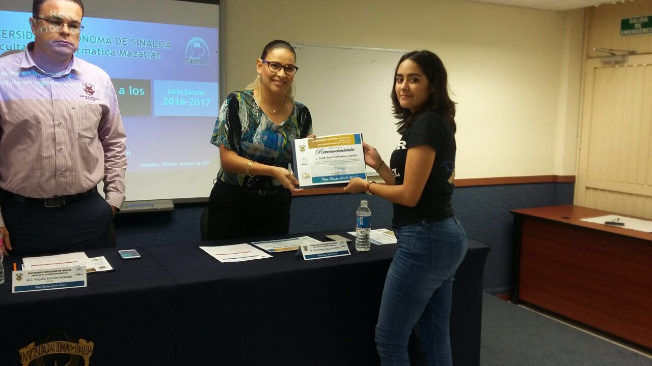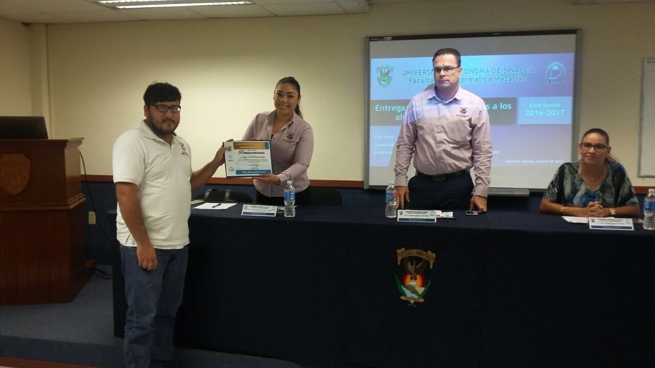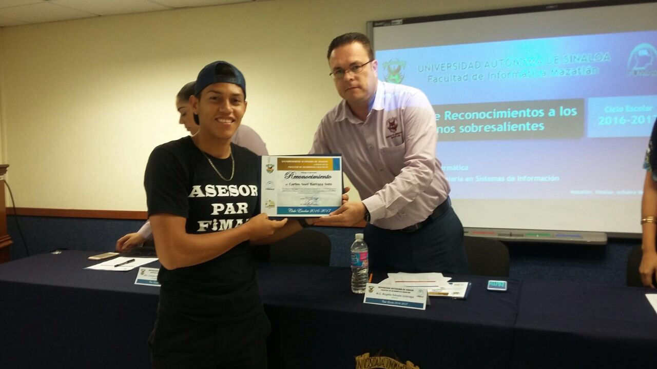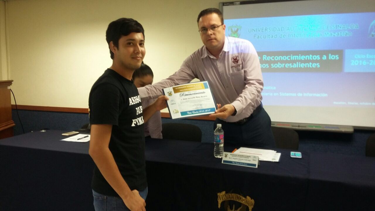 El Ciclo Escolar 2016-2017 culmina, no sin antes hacer un merecido reconocimiento a los alumnos con buen aprovechamiento académico. Por tal motivo el pasado viernes 20 de octubre del presente año, en punto de las 12:00 horas, la Facultad llevó a cabo un evento en la Sala Audiovisual de la misma, donde se hace la entrega de reconocimientos los tres mejores promedios de cada grado escolar de las carreras Licenciatura en Informática y Licenciatura en Ingeniería en Sistemas de Información.