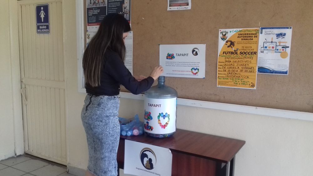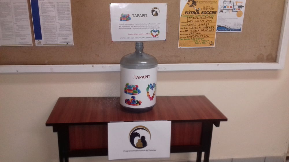 El pasado 09 de noviembre la RT. LI. Cielo Estrella Meza González acudió a plaza Acaya donde entregó las tapas de plástico recolectadas en el TAPAPIT, campaña propuesta por el departamento de tutorías en el que los alumnos de la Facultad gustosamente apoyaron con tapas de plástico de diversos envases para ayudar a Casa Valentina, organización sin fines de lucro que apoya a niños con cáncer y a sus familiares.
