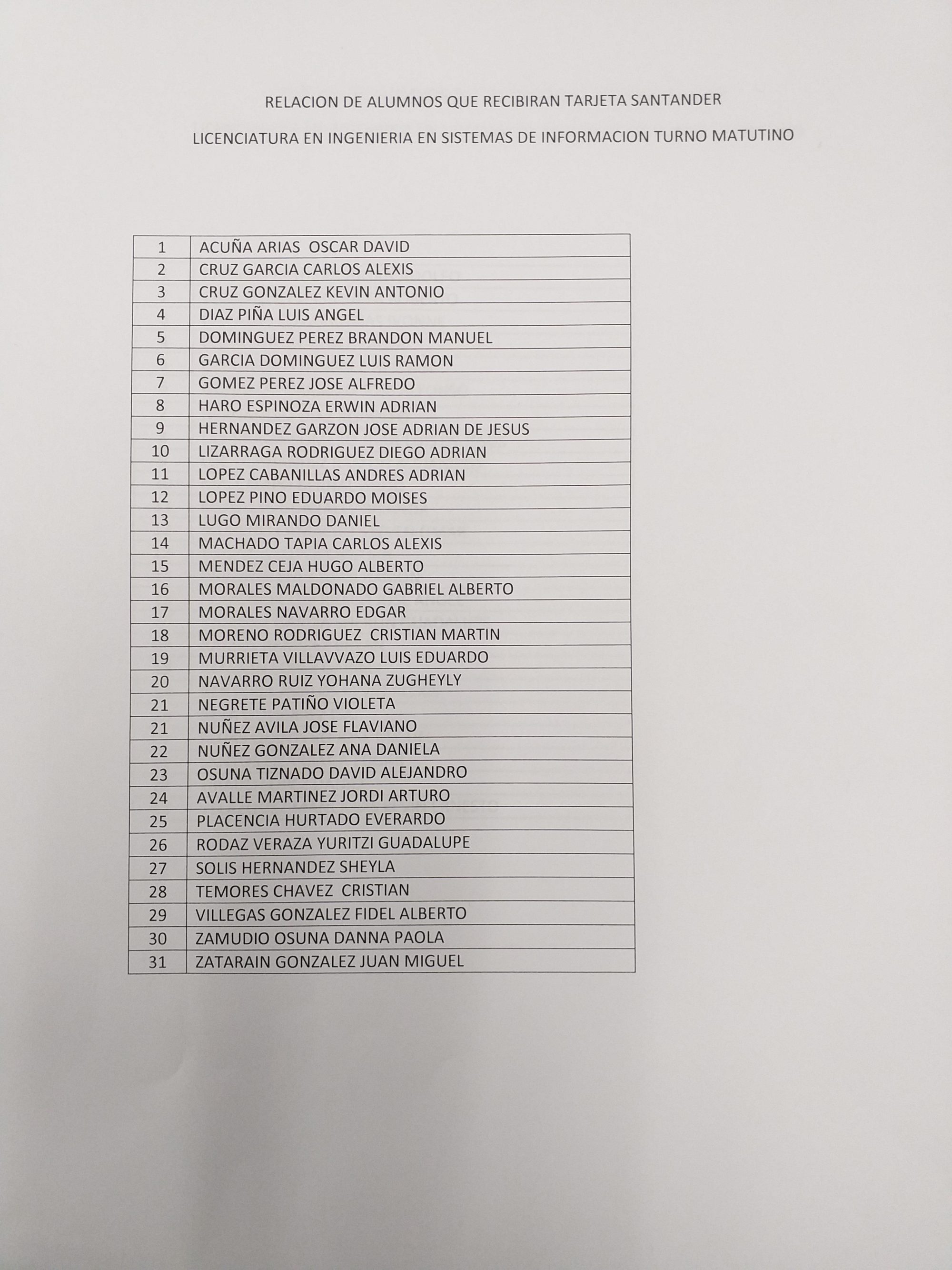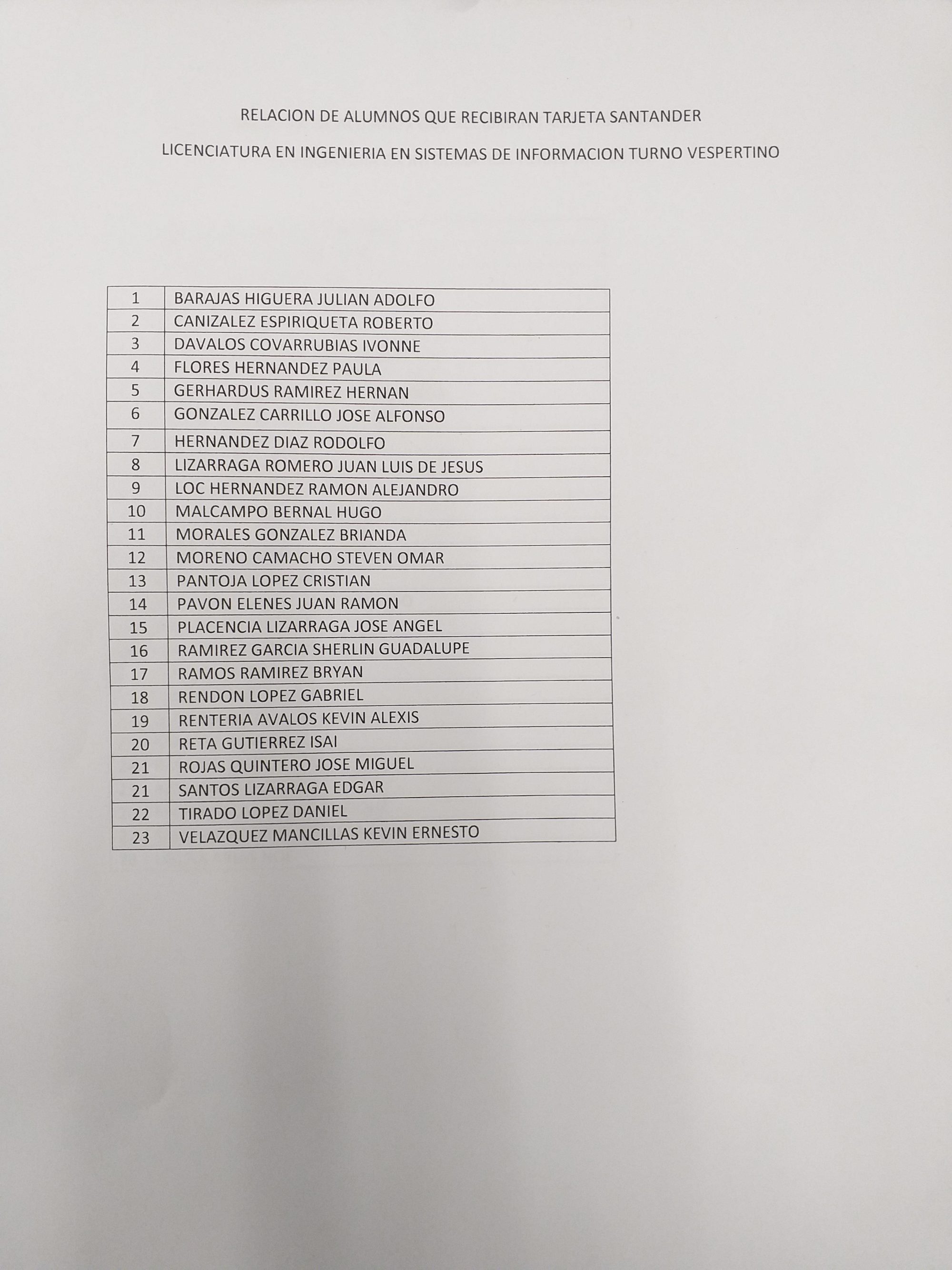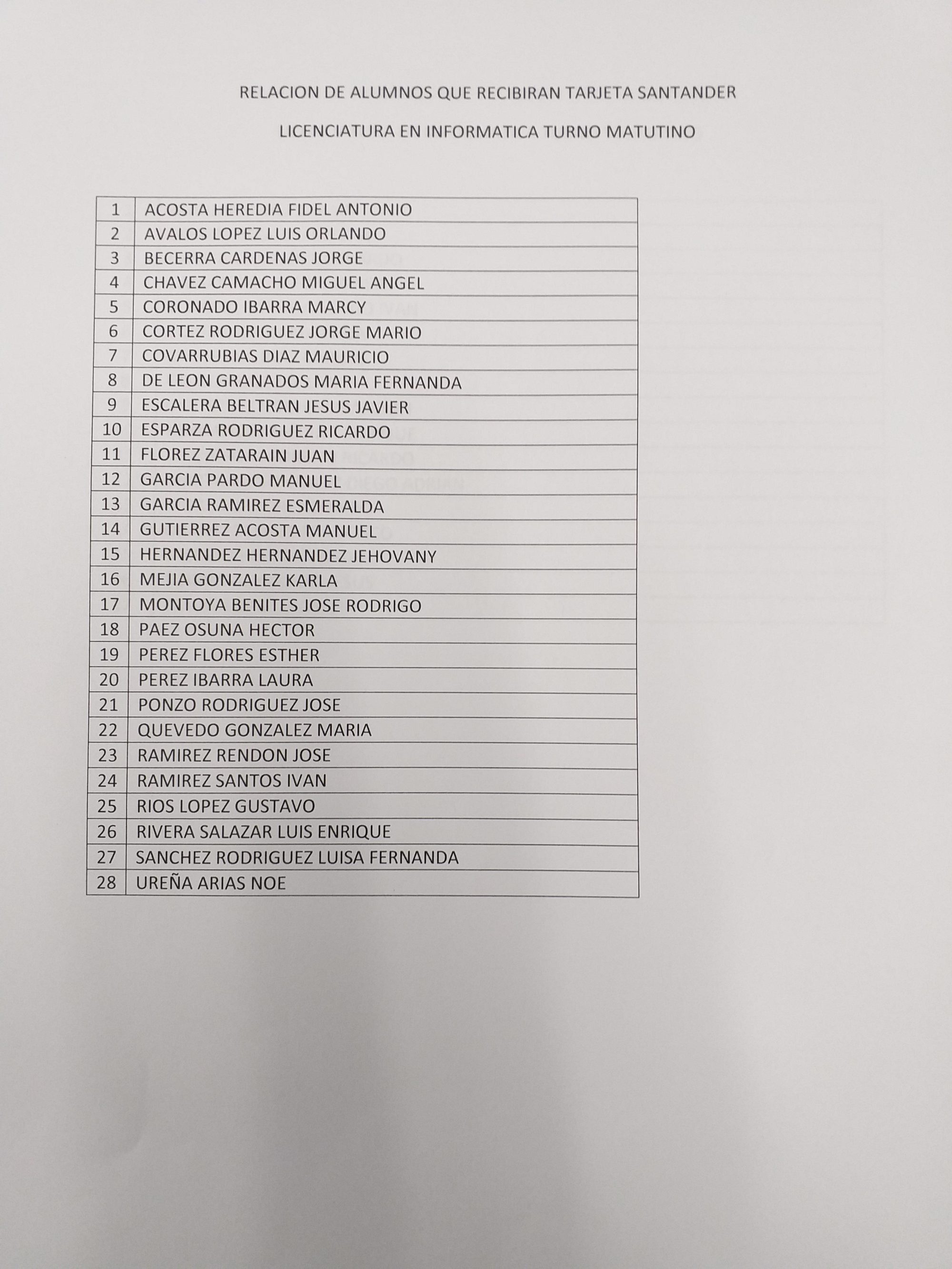 Se adjunta lista de los estudiantes que podrán recoger la tarjeta. Así mismo, se adjunta una lista con los tipos de documentación valida que se puede presentar.