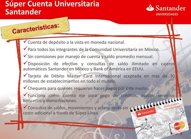 El día 6 de noviembre de 2019, por único día, se estará haciendo entrega de la tarjeta universitaria santander a los estudiantes de nuevo ingreso, en un horario de 10:00 am a 6:00 pm. Dicha tarjeta corresponde a una cuenta tipo débito/ahorro la cual no genera comisiones de uso para los estudiantes.