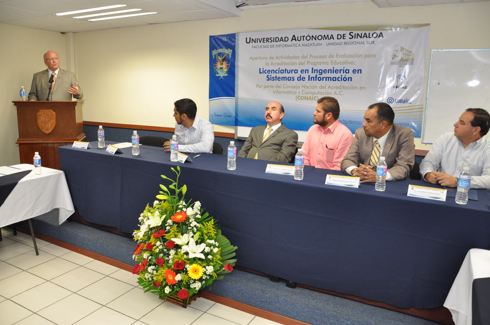 A la ceremonia protocolaria que da paso a las actividades de evaluación, asistieron el Rector de la Uas, Juan Eulogio Guerra Liera, el vicerector de en la Unidad Regional Sur, Miguel Ángel Díaz Quinteros, el Secretario de Administración y Finanzas de la Universidad, Manuel de Jesús Lara Salazar, además del personal docente y evaluadores externos miembros de la CONAIC, procedentes de las Instituciones de educación superior como: la Universidad Autónoma de México, la Autónoma de Nayarit y la Autónoma de Aguascalientes.