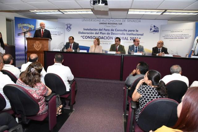 La Universidad Autónoma de Sinaloa (UAS) cerró en la Unidad Regional Sur (URS) la instalación de las mesas del Foro de Consulta para la elaboración del Plan de Desarrollo Institucional «Consolidación Global 2021».