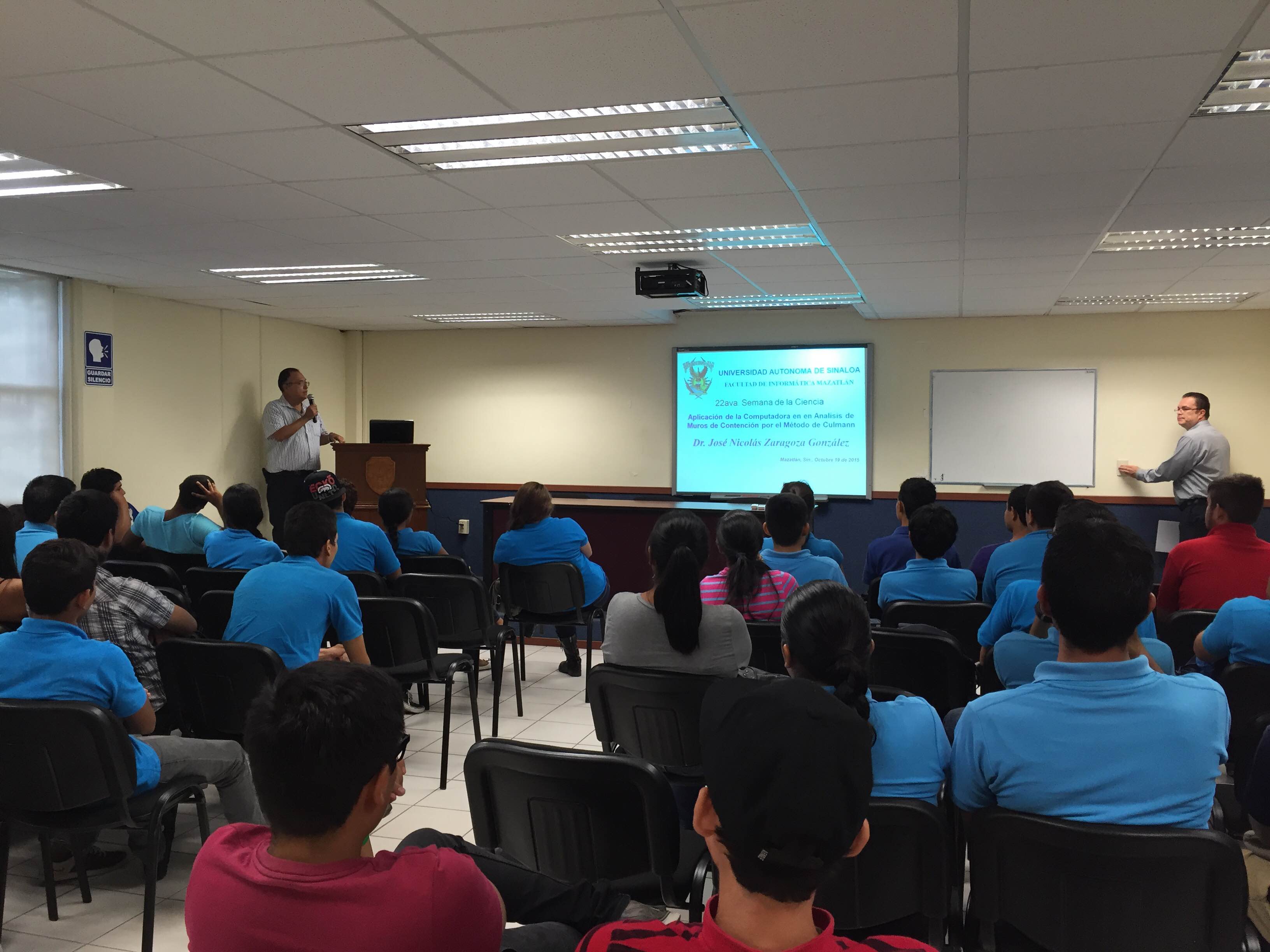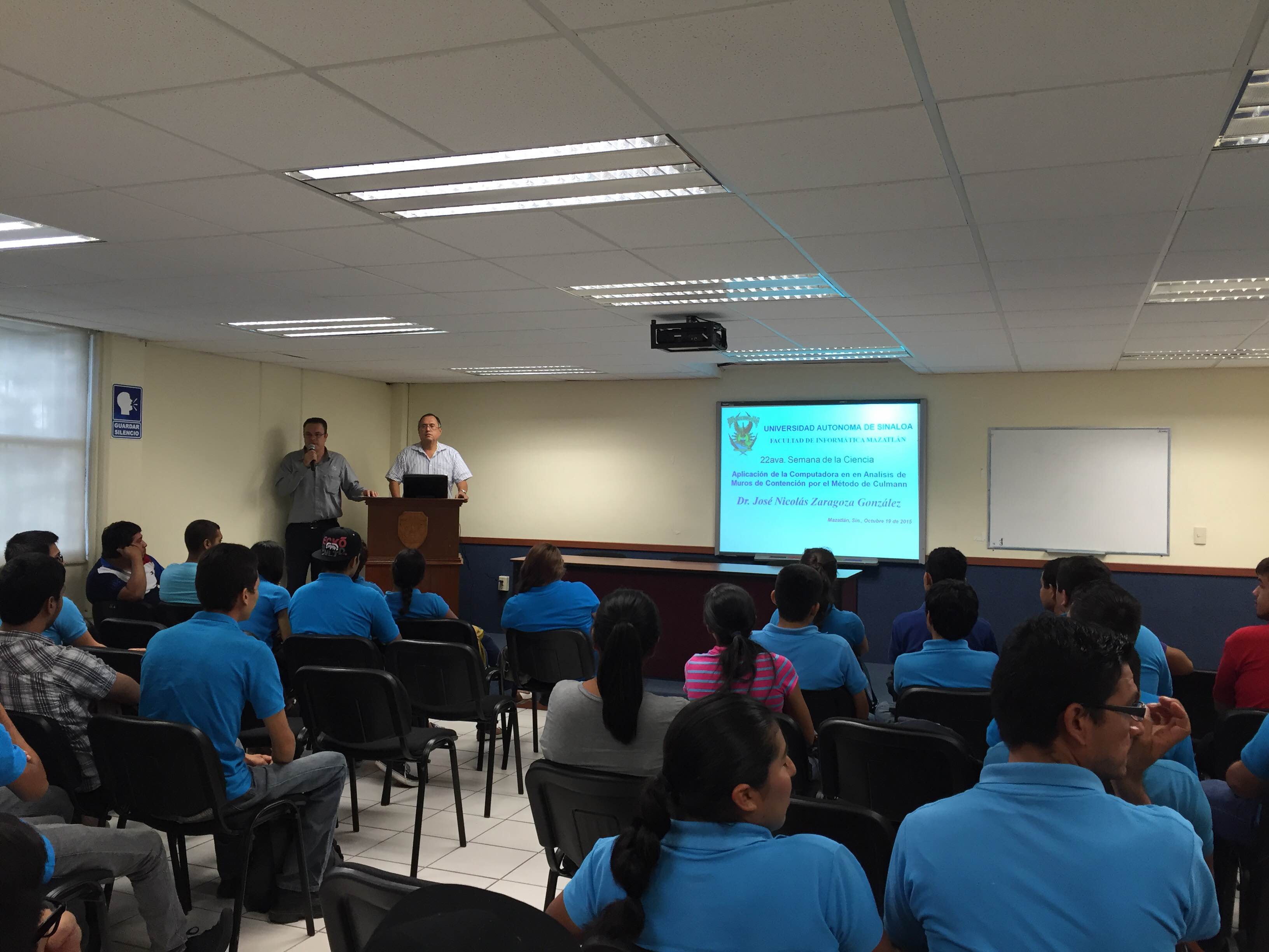 Hoy lunes 19 de octubre ha dado inicio la 22ª. Semana Nacional de Ciencia y Tecnología que promueve el Consejo Nacional de Ciencia y Tecnología (CONACYT), en las instalaciones de la Facultad. La inauguración de las actividades ha quedado a cargo del M.C. David Solís Olivares con la Conferencia “Calidad en las Empresas” a las 9:00 horas en la Sala Audiovisual, seguido del Dr. José Nicolás Zaragoza González con la Conferencia “Aplicación de la computadora en el análisis de muros de contención” y la M.C. Sandra Olivia Qui Orozco con el Taller de “Lógica”.