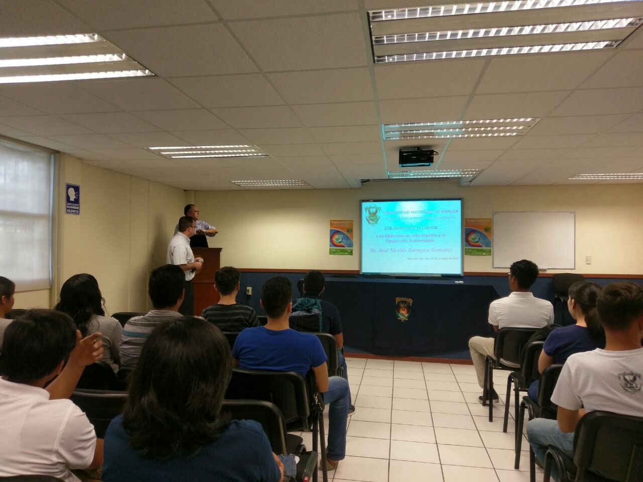 Hoy lunes 24 de octubre ha dado inicio la 23ª. Semana Nacional de Ciencia y Tecnología que promueve el Consejo Nacional de Ciencia y Tecnología (CONACYT), en las instalaciones de la Facultad. La inauguración de las actividades ha quedado a cargo del Dr. José Nicolás Zaragoza Gonzáles con la Conferencia “Los Sistemas de Información y el Desarrollo Sustentable” a las 9:40 horas en la Sala Audiovisual.