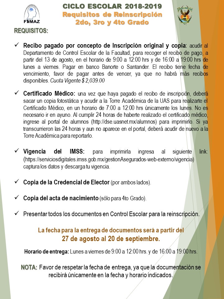 CICLO ESCOLAR 2018-2019: REQUISITOS DE INSCRIPCIÓN Y REINSCRIPCIÓN