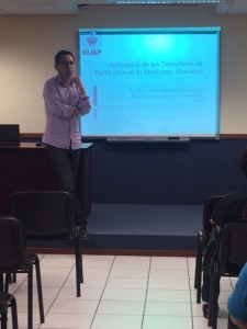 El día jueves 25 de febrero un grupo de estudiantes de la Facultad se dieron cita en la sala audiovisual en donde tuvieron la oportunidad de participar en la conferencia «Aplicación de los detectores de partículas en la medicina» impartida por el Dr. Mario Iván Martínez Hernández profesor e investigador de la Facultad de Físico Matemáticas de la Benemérita Universidad Autónoma de Puebla.