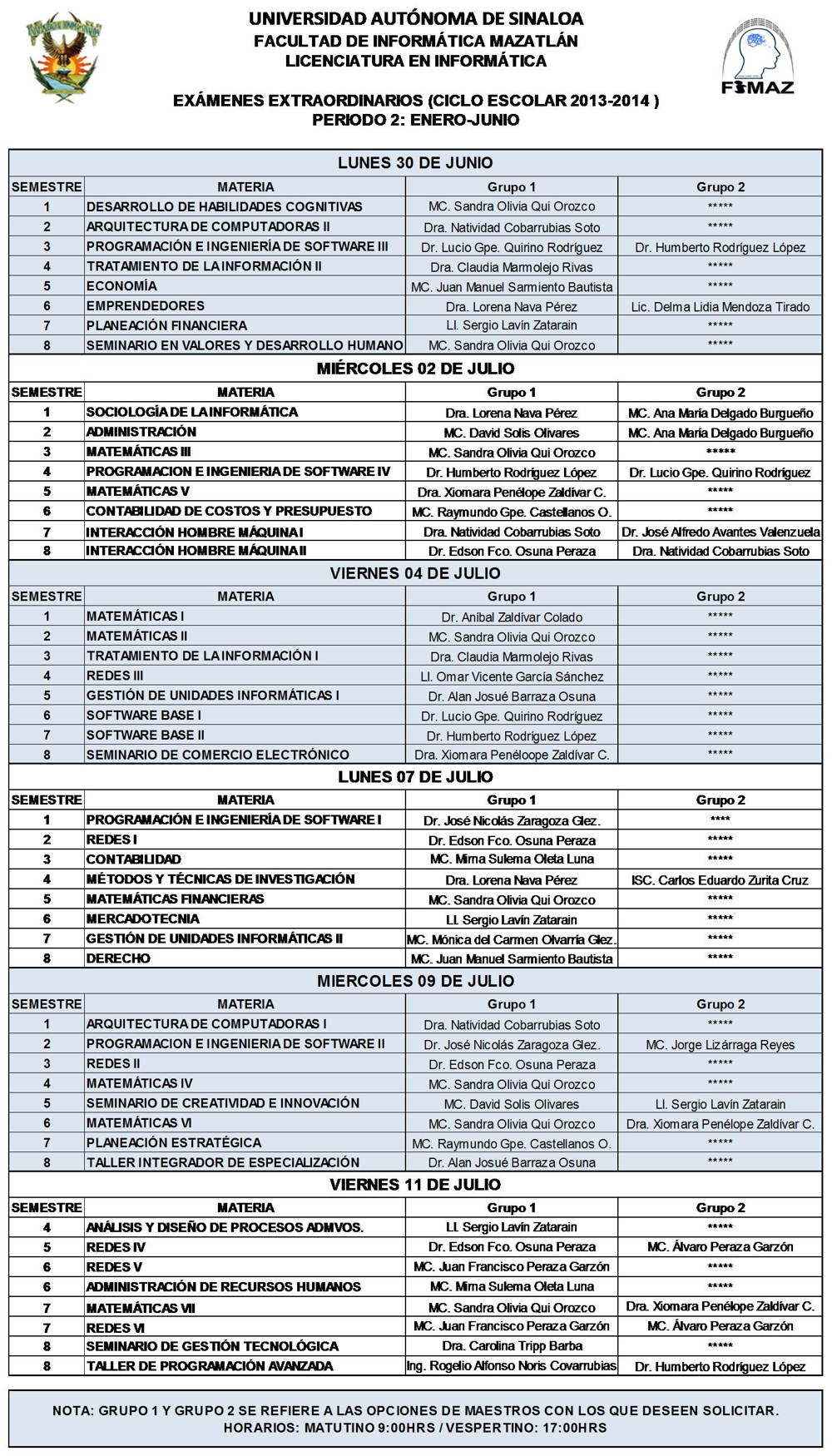 Exámenes Extraodinarios