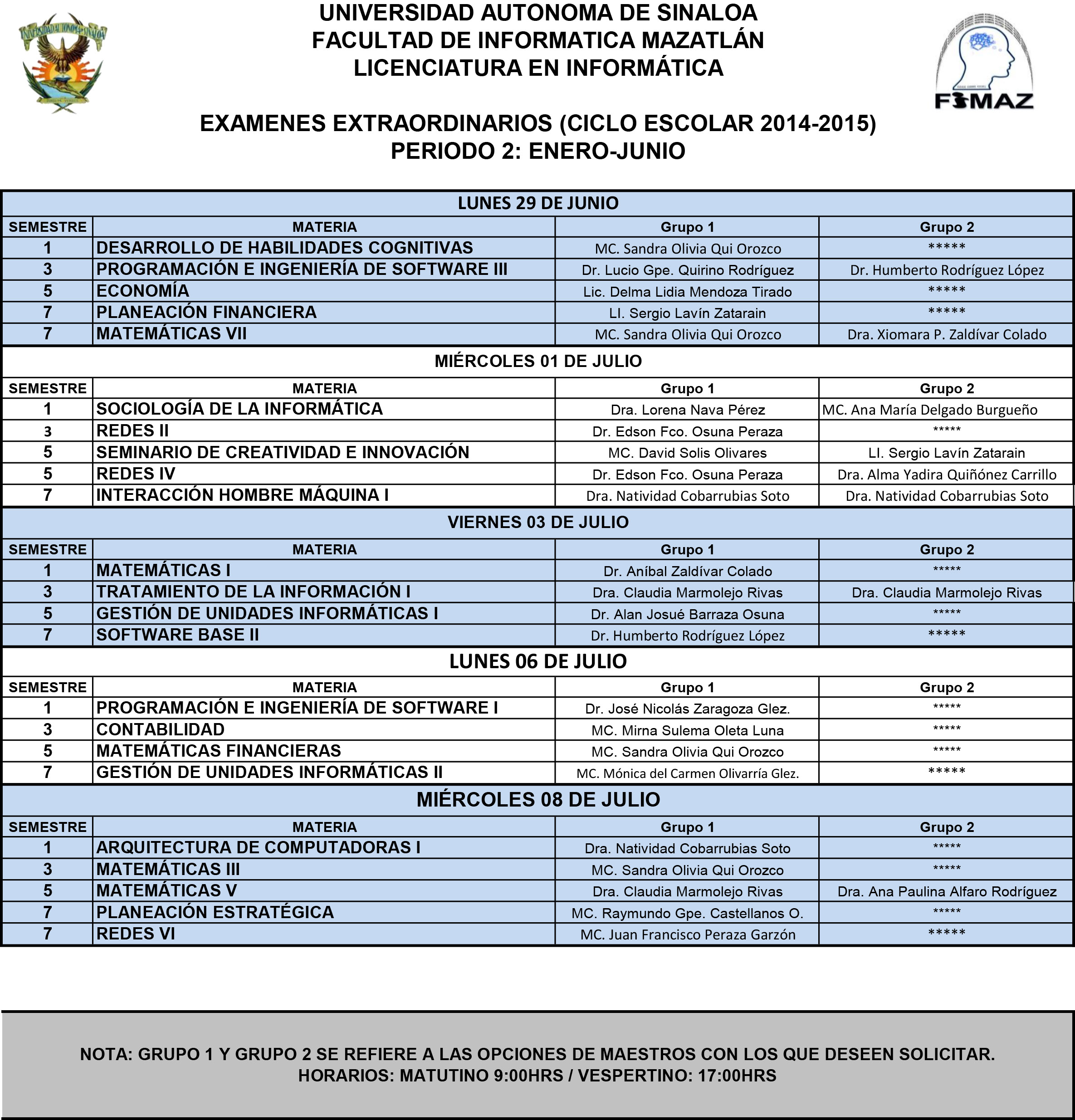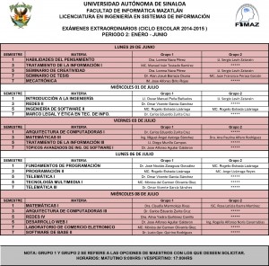 EXAMENES EXTRAORDINARIOS 2014-2015 PERIODO 2