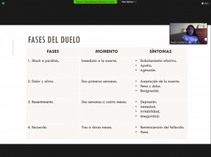 En la Facultad de Informática Mazatlán, a través del CAE UR Sur, se llevó a cabo mediante plataforma zoom, la plática: «Manejo de Duelo», por la Psic. PSS. Nahomi Gpe. Zamudio, en coordinación con la Responsable de Tutorías de dicha UA, LI. Cielo Meza.