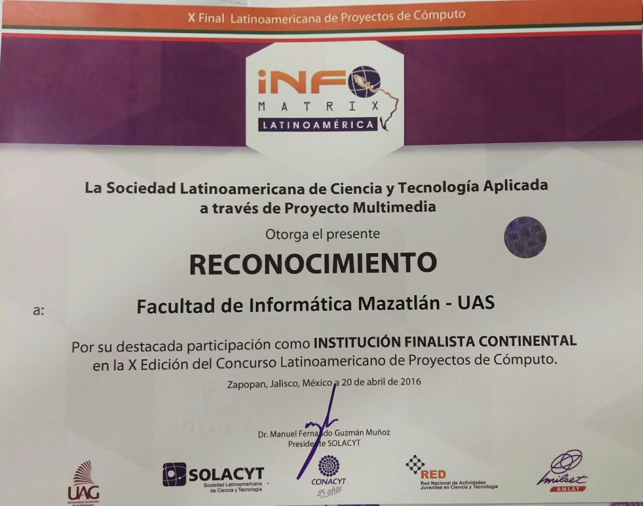 Zapopan, Jalisco. 26 de abril de 2016 (Agencia Informativa Conacyt).- Tras tres días de presentaciones de proyectos, se celebró el pasado fin de semana, la Final Continental del Concurso Latinoamericano de Proyectos de Cómputo Proyecto Multimedia, organizada por la Sociedad Latinoamericana de Ciencia y Tecnología (Solacyt).