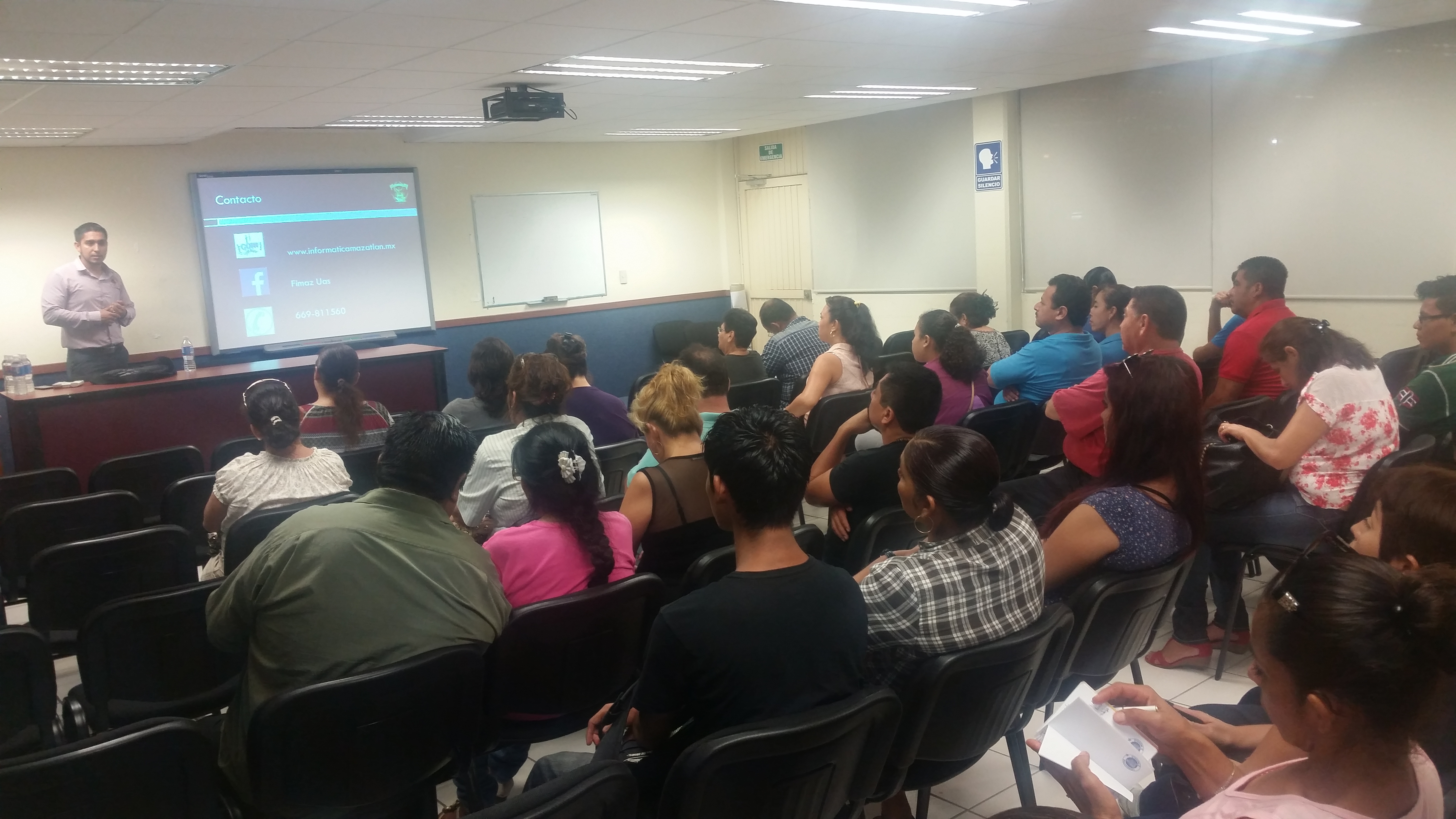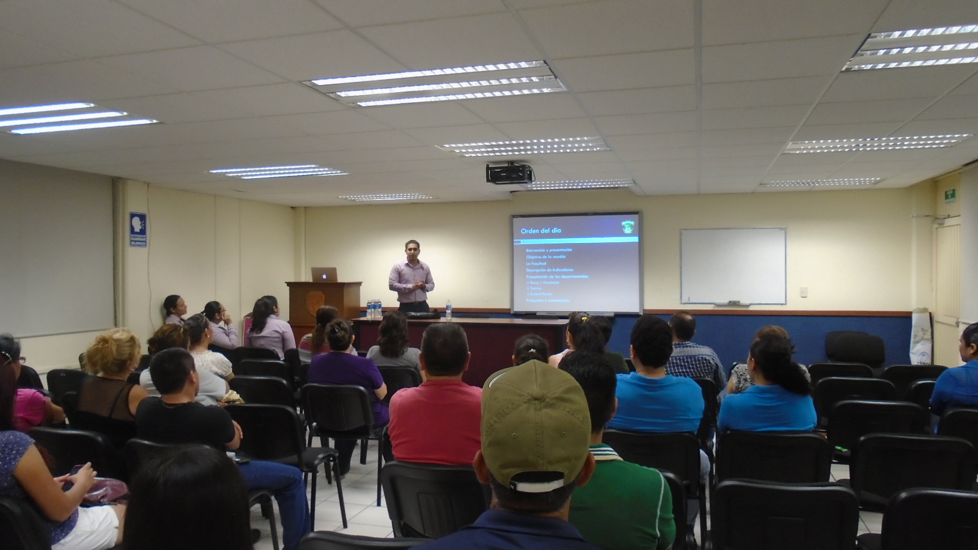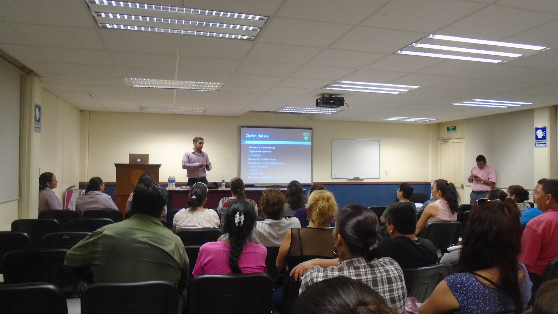 El martes 06 de octubre a las 19:00 horas, se realizó la reunión con los padres de familia en la Sala Audiovisual de la Facultad. Convocando la presencia de padres de alumnos de primer grado de las carreras de Licenciatura en Ingeniería en Sistemas de Información y Licenciatura en Informática respectivamente.