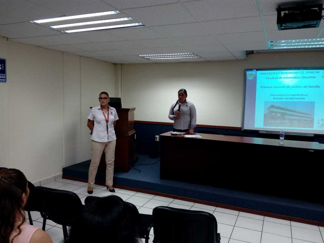 Los pasados días 19 y 20 de septiembre se llevó a cabo la reunión con padres de familia de los alumnos de nuevo ingreso al ciclo escolar 2018-2019. El día 19 de septiembre con padres de familia de alumnos de la carrera de Licenciatura en Ingeniería en Sistemas de Información de ambos turnos y el día 20 de septiembre con padres de familia de alumnos de la carrera de Licenciatura en Informática de ambos turnos en el auditorio de la Facultad. En las reuniones participaron el director de la facultad, la secretaria académica, la encargada de control escolar y la responsable de tutorías, quienes socializaron cuestiones importantes referentes a su departamento y que tienen que ver con la culminación exitosa de la carrera en la que ingresaron este ciclo escolar sus hijos.