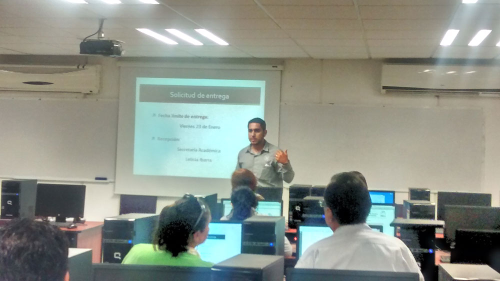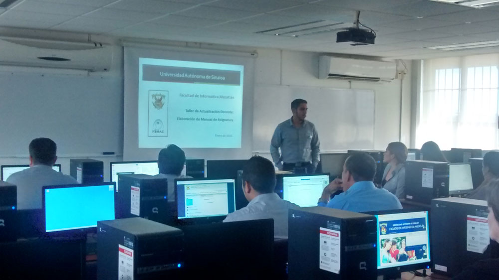 Ayer lunes 12 de enero de 2015 se llevó a cabo en el Laboratorio de Cómputo de la Facultad, el Taller de Actualización Docente: Elaboración de Manual de Asignatura de 16:00 a 18:00 horas. El taller está dirigido a toda la planta docente que integra la Unidad Académica, con la finalidad de trabajar los programas de estudio de cada una de las asignaturas ofertadas en las carreras de Licenciatura en Informática e Ingeniería en Sistemas de Información, para emigrar al modelo educativo basado en competencias que promueve la Universidad.